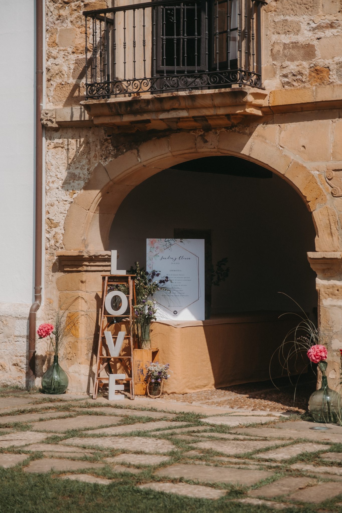 En esta boda en Asturias, los preparativos, que fueron realizados en una estancia del palacio, como la ceremonia, celebrada en la iglesia pegada al mismo, fueron en los tiempos marcados y todo gracias a los profesionales que se encargaron de la organización.