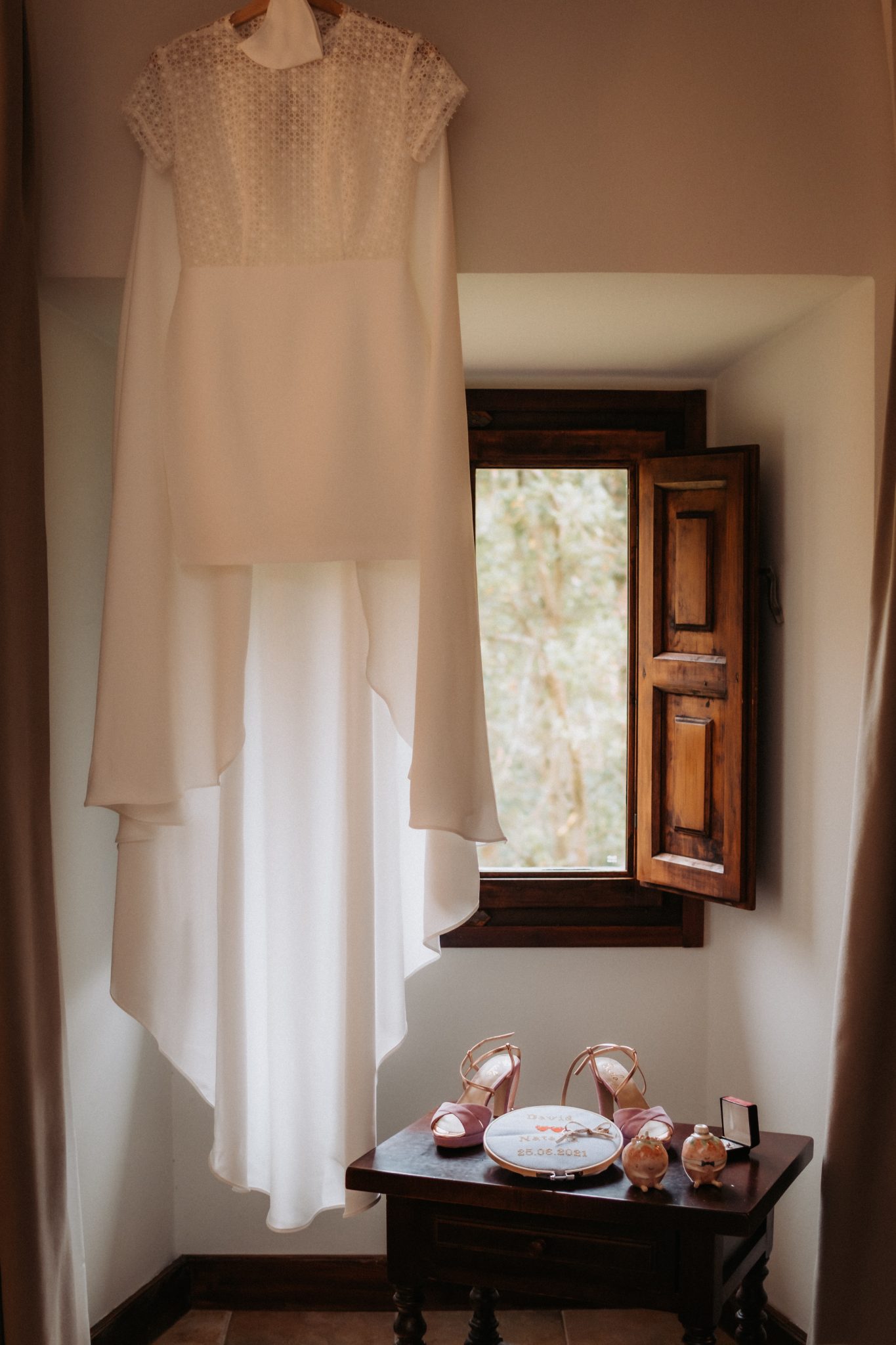 La ceremonia fue civil, celebrada en el patio interior del Parador de Cangas de Onís donde una concejala del municipio fue la encargada de unir en matrimonio a Natalia y David.