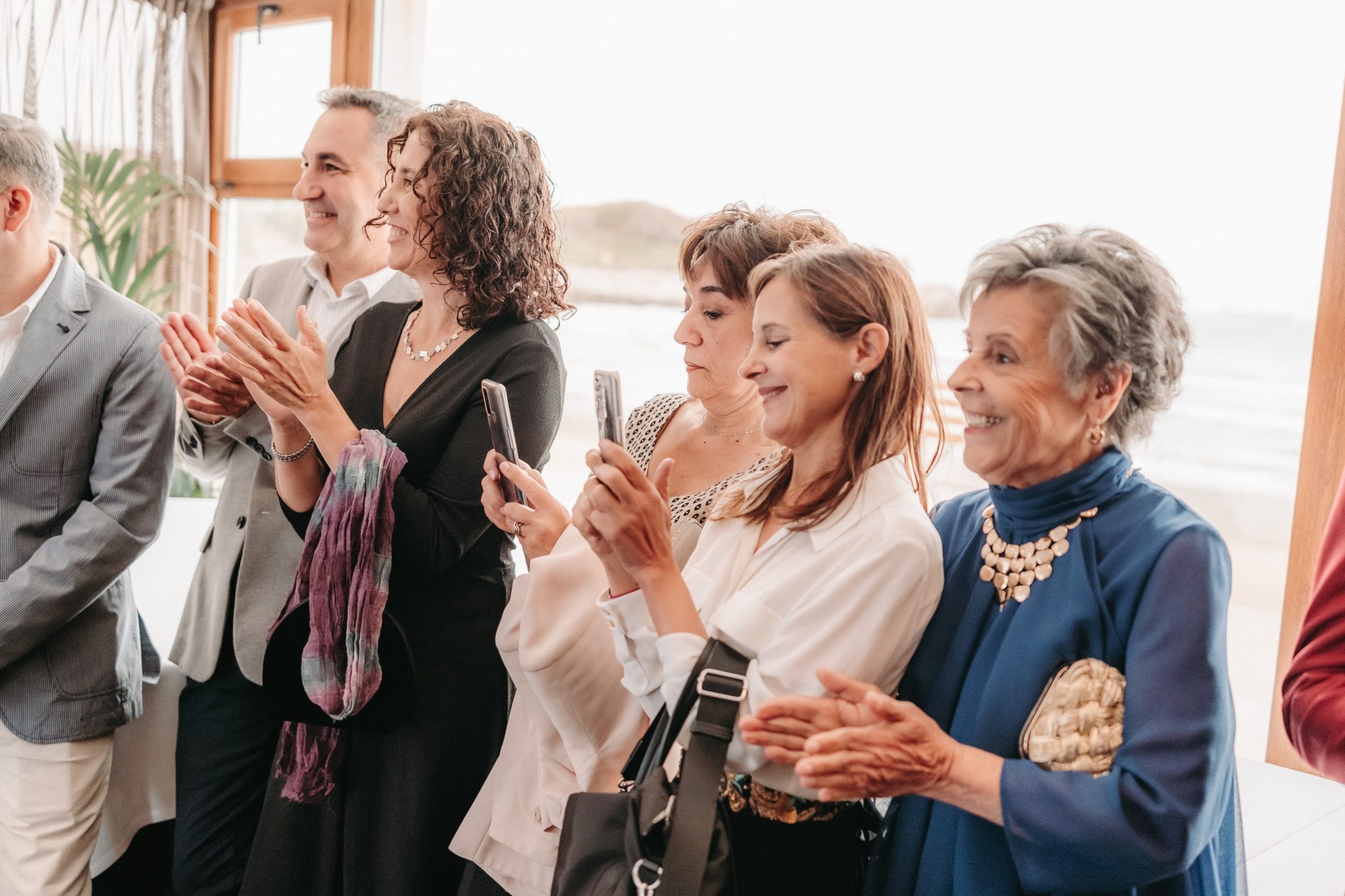 Al finalizar la ceremonia hicimos algunas fotos de pareja aprovechando que teníamos toda la playa para nosotros. Y luego en el cóctel, en el que estuvimos casi dos horas, los invitados y los novios se iban mezclando, abrazando y riendo.